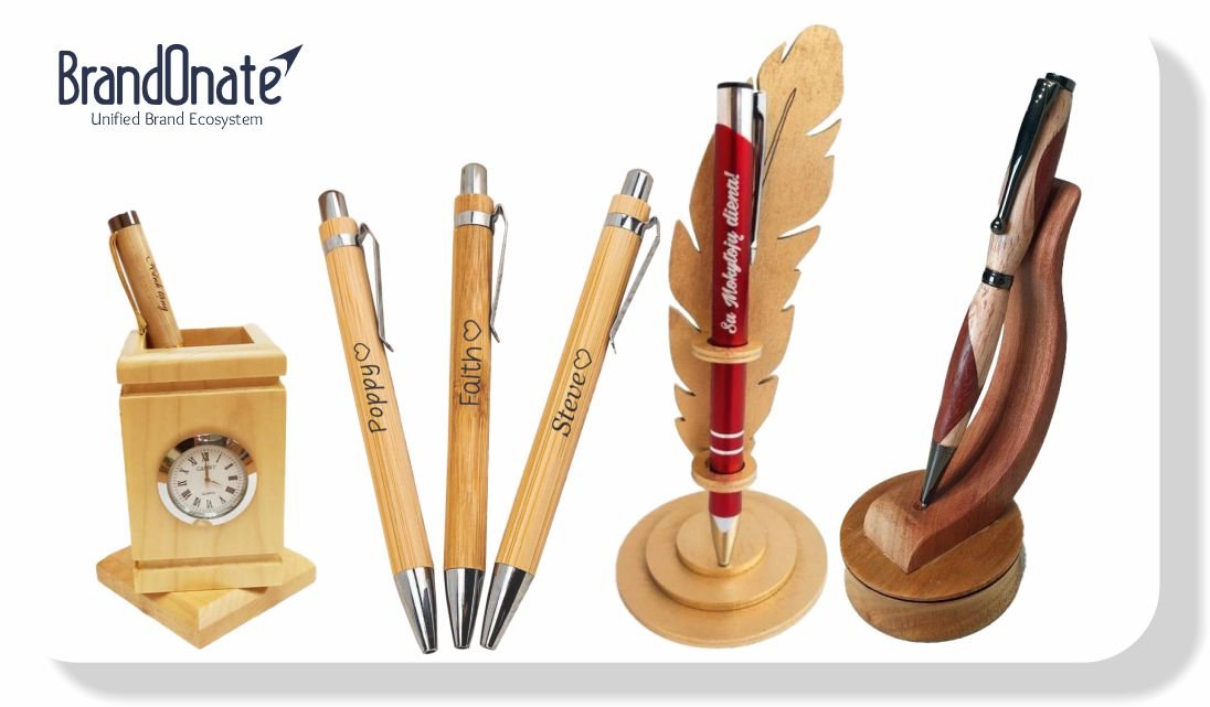 Branded writing accessories and office supplies.